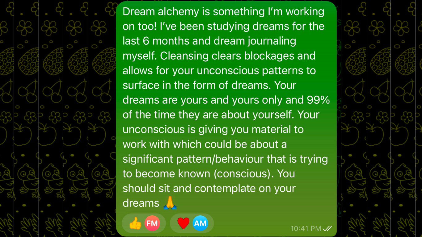 This is where real breakthroughs happen. When you're decoding a nightmare that's been recurring for months. When a detox reaction shows up and you need protocol adjustments. When you're stuck on a symbol and need help interpreting what your unconscious is showing you.